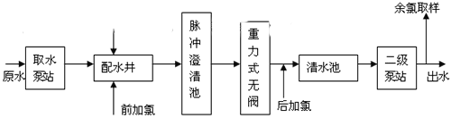 南方某一水廠,以江水為水源,水廠原設(shè)計(jì)規(guī)模為6萬(wàn)m3/d。工藝流程如下示: